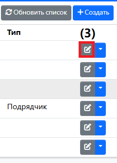 Для редактирования контрагента нажмите кнопку, которая показана на скриншоте (3).