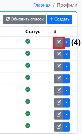 Для редактирования пользователя нажмите кнопку редактирования (4).