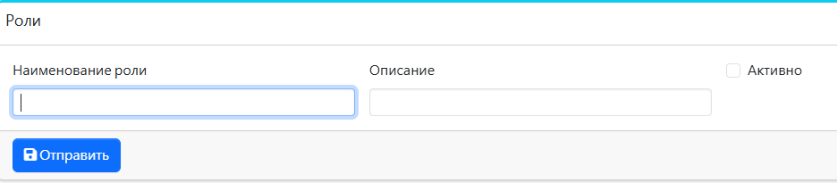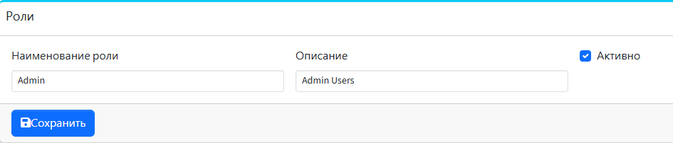Введите наименование роли, описание и поставьте галочку "Активно". Нажмите кнопку "Сохранить".